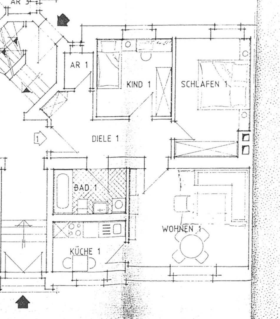 - Wohnzimmer, 2 Schlafzimmer, Küche, innenliegendes Bad, Diele, Abstellraum