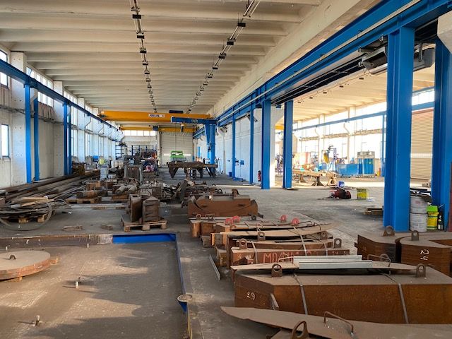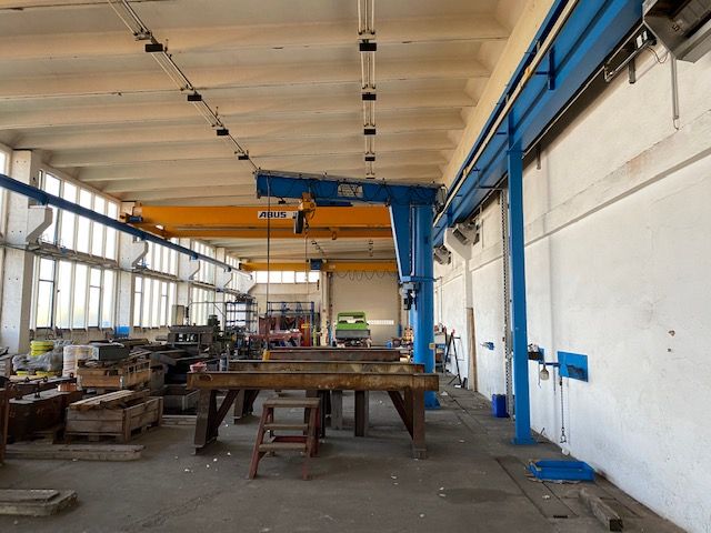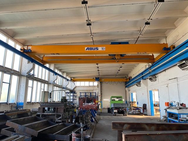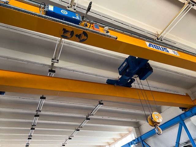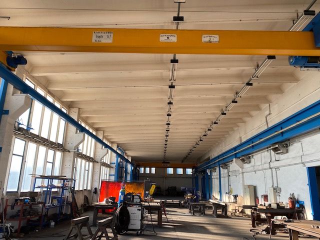 - Kranbahnen je Hallenschiff 1 x 5t und Doppelkranbahn 16t je Bahn