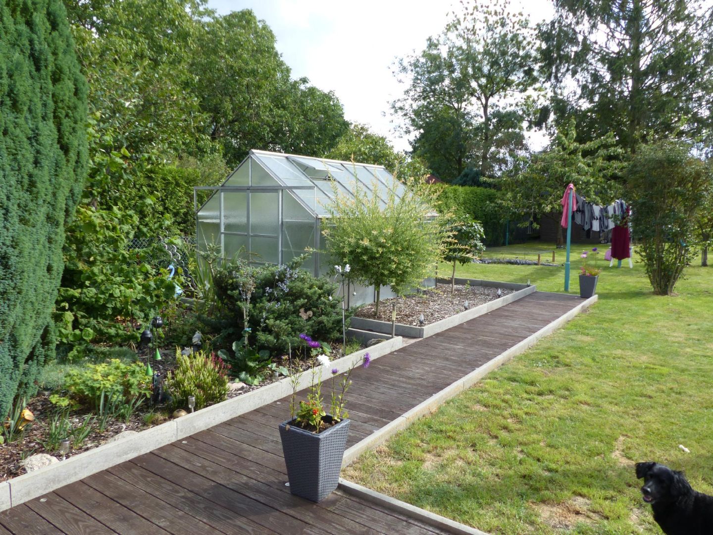 - Terrasse (Holz) mit Markise, Garten, Gartenhaus