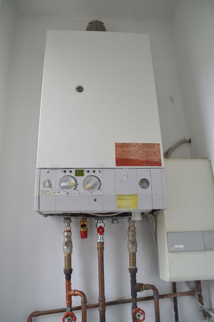 - Beheizung über Gasthermen (Standort jeweils im Zwischengeschoss), je Wohnung eine Gastherme, Ausnahme 1. Obergeschoss nur eine Gastherme für 2 Wohnungen