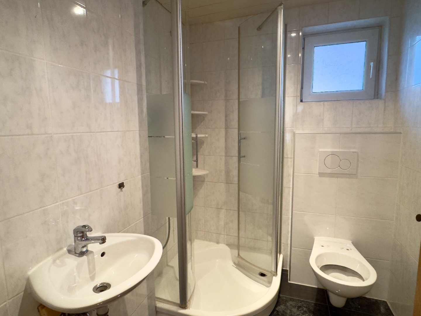 - (Tageslicht)-Bäder gefliest, teilweise Kunststoff- und Laminatfußböden, Außenjalousien, Kunststoffrahmenfenster mit Isolierverglasung,