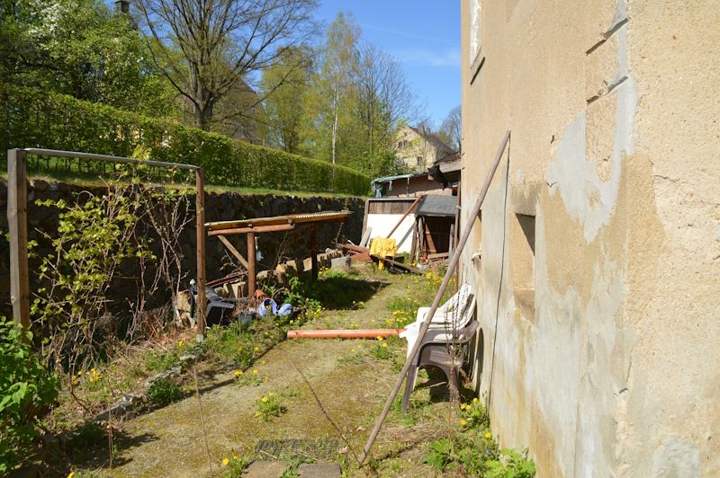 - Bei der zum Verkauf stehenden Immobilie handelt es sich um ein mit einem zweigeschossigen sanierungsbedürftigen Wohnhaus bebautes Grundstück.Weiterhin befinden sich auf dem Grundstück ein Nebengebäude mit angebauter Garage sowie ein kleiner Schuppenanbau am Wohnhaus.