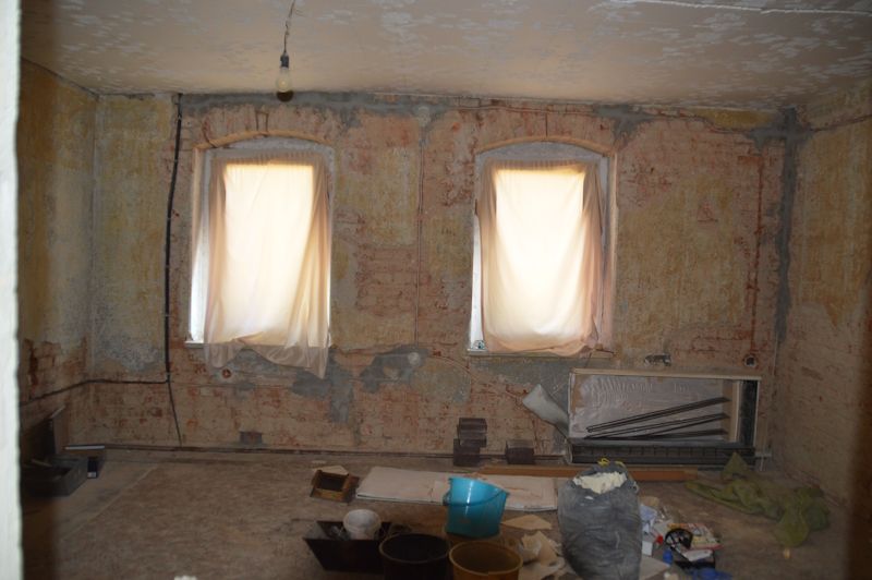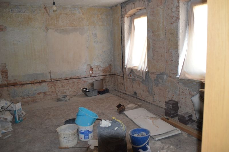 - Innenwände verputzt und teilweise tapeziert, teilweise sanierungsbedingt Putz abgeschlagen