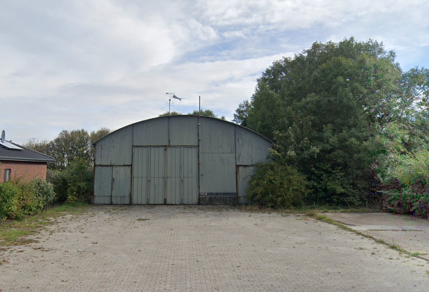 - Auf dem Grundstück befindet sich zentral eine freitragende Halle
