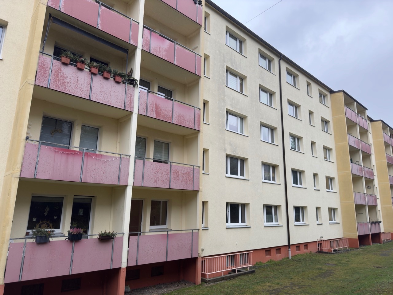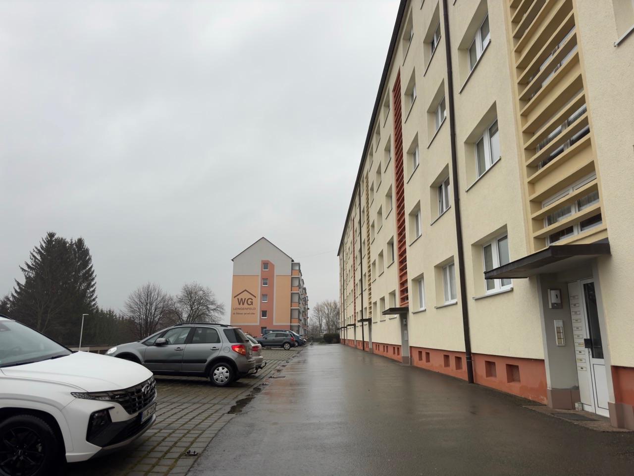 - Die zum Verkauf stehende Wohnung befindet sich in einem kleinen Wohngebiet, ca. 100 m abseits der Hauptstraße (Bahnhofstraße). Die Wohnsiedlung wurde um 1973 errichtet und besteht aus 4 Wohnblöcken.
