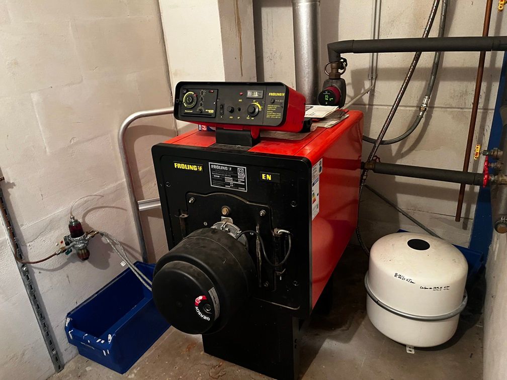 - massive Bauweise, Stahlskelett mit Porenbetonwänden, Industrieboden, Ölheizung