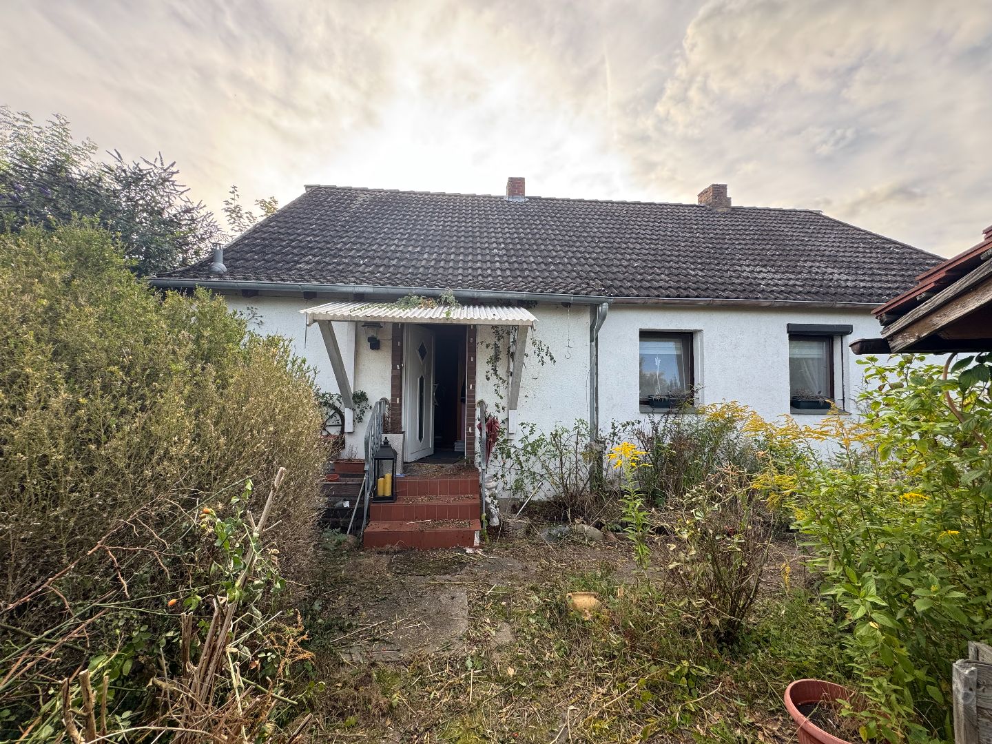 - Bei der zum Verkauf stehenden Liegenschaft handelt es sich um eine Doppelhaushälfte mit Nebengebäude und Gartenhaus.