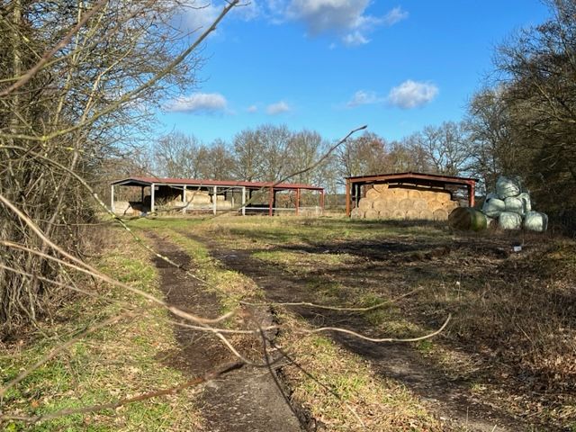 - Beschaffenheit: Grünland, bebaut mit einer offenen Halle sowie einer weiteren, in abrissreifem Zustand