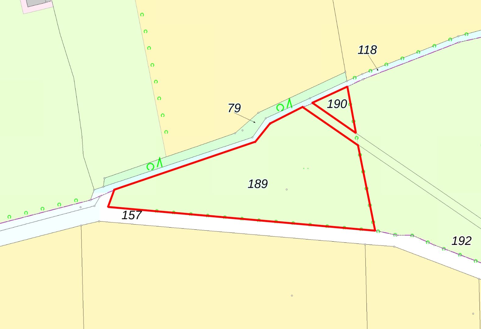 - Das Flurstück 190 ist augenscheinlich mit einem Heuschober bebaut, dessen Zustand unbekannt ist.