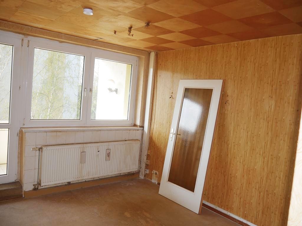- holzfurnierte Wohnungseingangstür, Teppich-, Vinyl- und Fliesenfußboden; Kunststoffrahmenfenster, Plattenheizkörper, Tageslichtbad