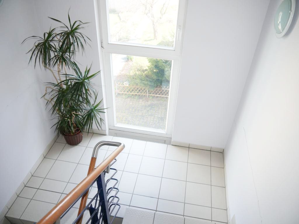 - isolierverglaste Kunststoff- und teilweise Holzrahmenfenster, Fußböden: Teppich, Fliesen, Laminat; Treppenhaus mit massiver Treppe, Metallgeländer und Fliesen als Belag; Innenwände verputzt und teilweise gestrichen oder gefliest, Plattenheizkörper, überwiegend Kunststoff- oder Glastüren