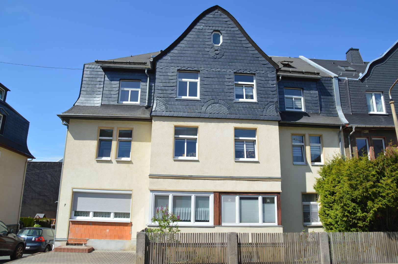 - Bei der zum Verkauf stehenden Immobilie handelt es sich um ein Mehrfamilienwohnhaus mit 6 Einheiten sowie im hinteren Grundstücksbereich ein abrissreifes, ehemals gewerblich genutztes Gebäude sowie ein Holzgebäude, welches als Doppelgarage genutzt wird.