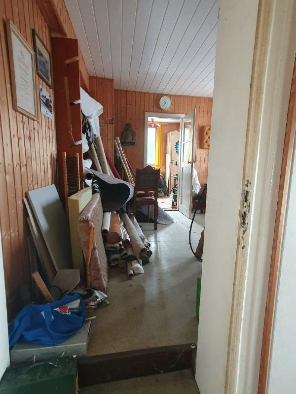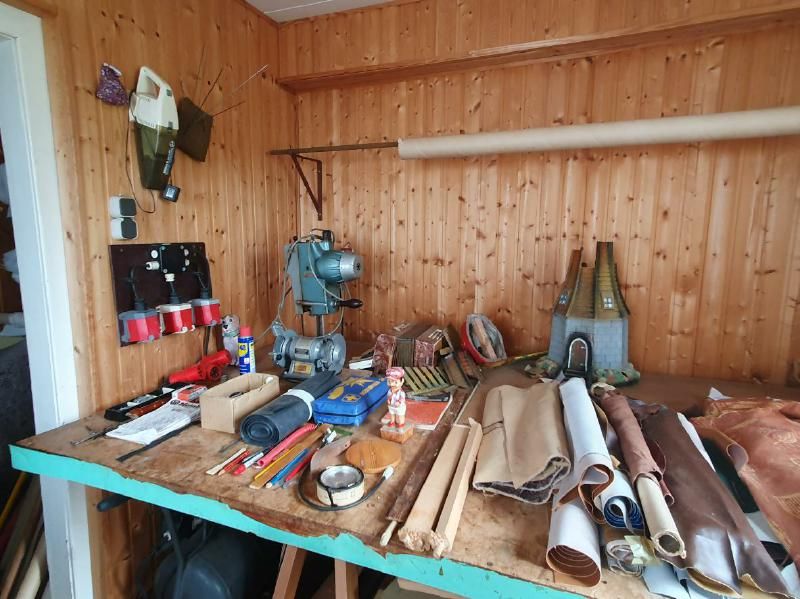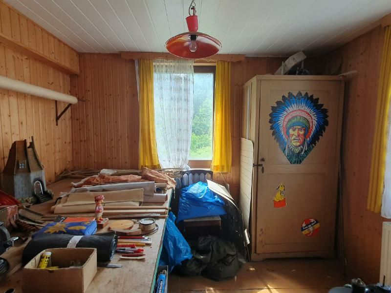 - Ausstattung: voll eingerichtete Polsterwerkstatt, Druckluftleitungen, Holzrahmenfenster mit Isolierverglasung, Flachheizkörper, Türen aus Röhrenspan in Holzoptik, drei WC's (je Ebene eines auf der rechten Seite), Wände und Decken mit Holzpaneele vertäfelt