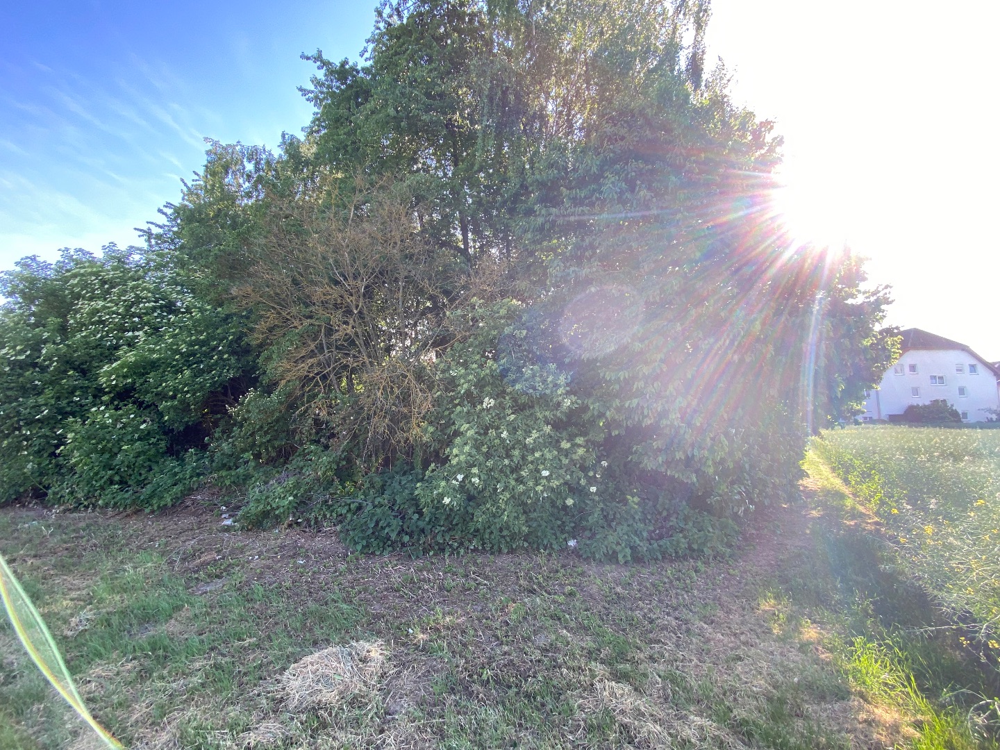 - Grundstück angrenzend an ein bestehendes Wohngebiet. Teilweise als Parkplatz genutzt. Drei Reihenhäuser grenzen an das Grundstück. Der übrige Bereich ist naturbelassen mit zahlreichen Bäumen und Sträuchern.