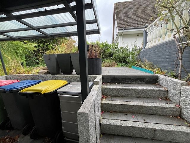 - EG: Gäste WC, Wohn- Essbereich, 2 Zimmer, Wintergarten, Balkon, Bad, Küche , Terrasse