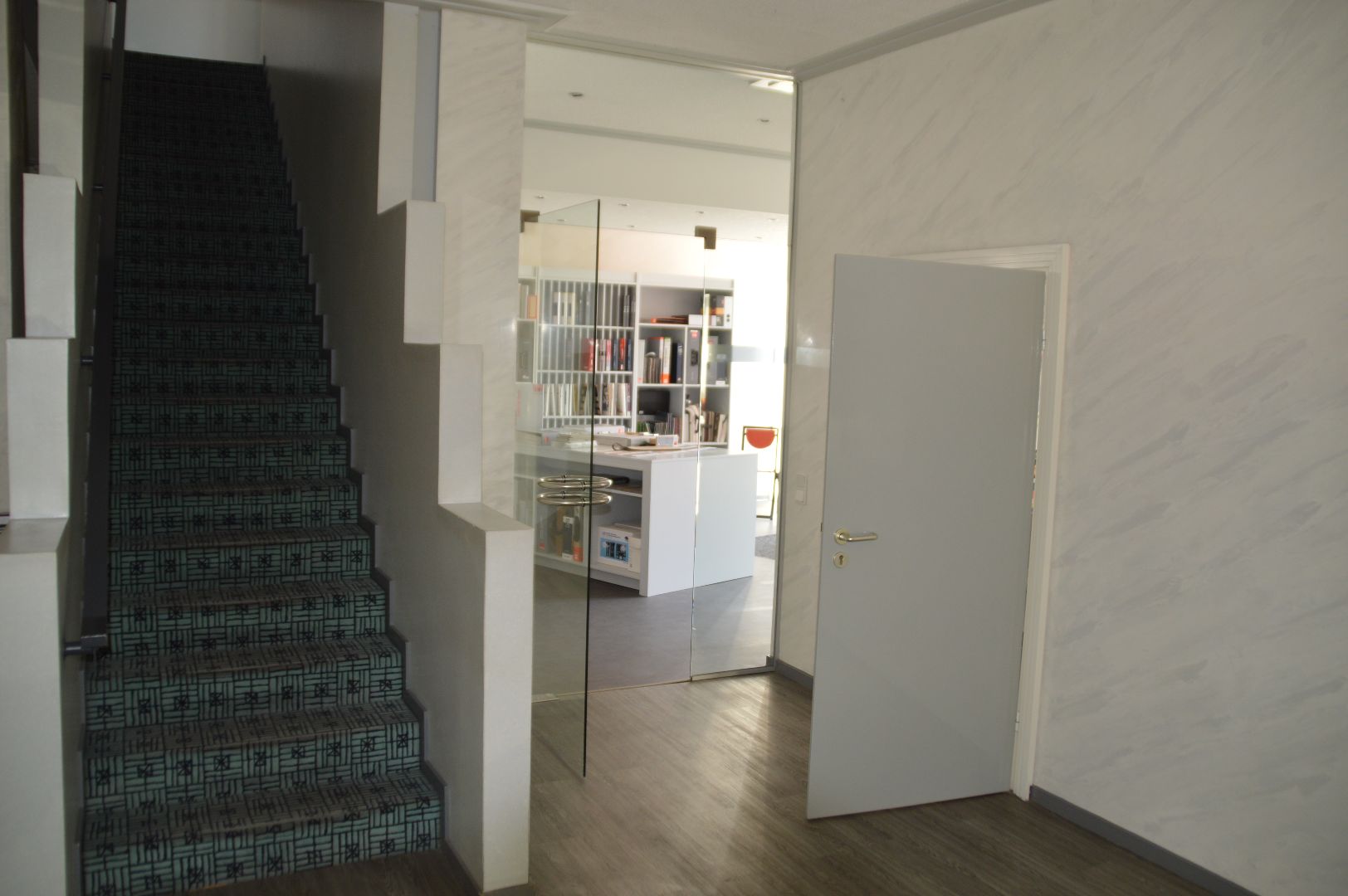 - Innentüren: Holz- und Metallzargen, Holz- bzw. Holzverbundtürblätter, lackiert, Glastüren