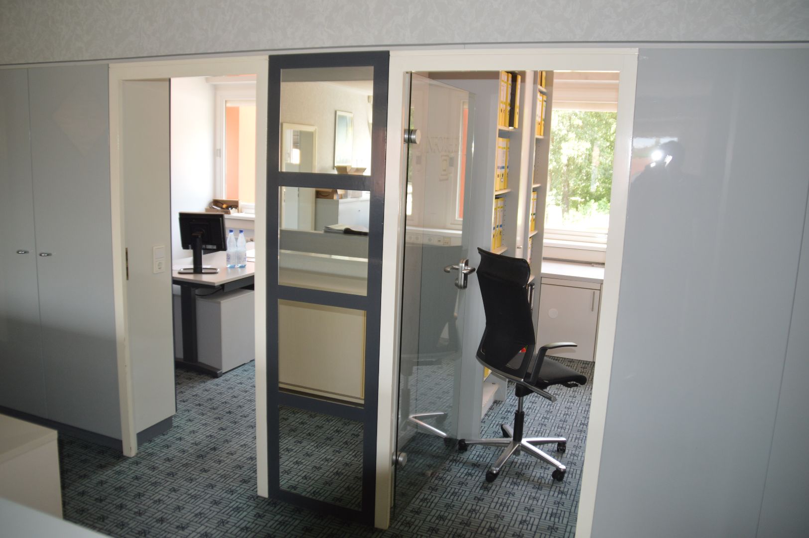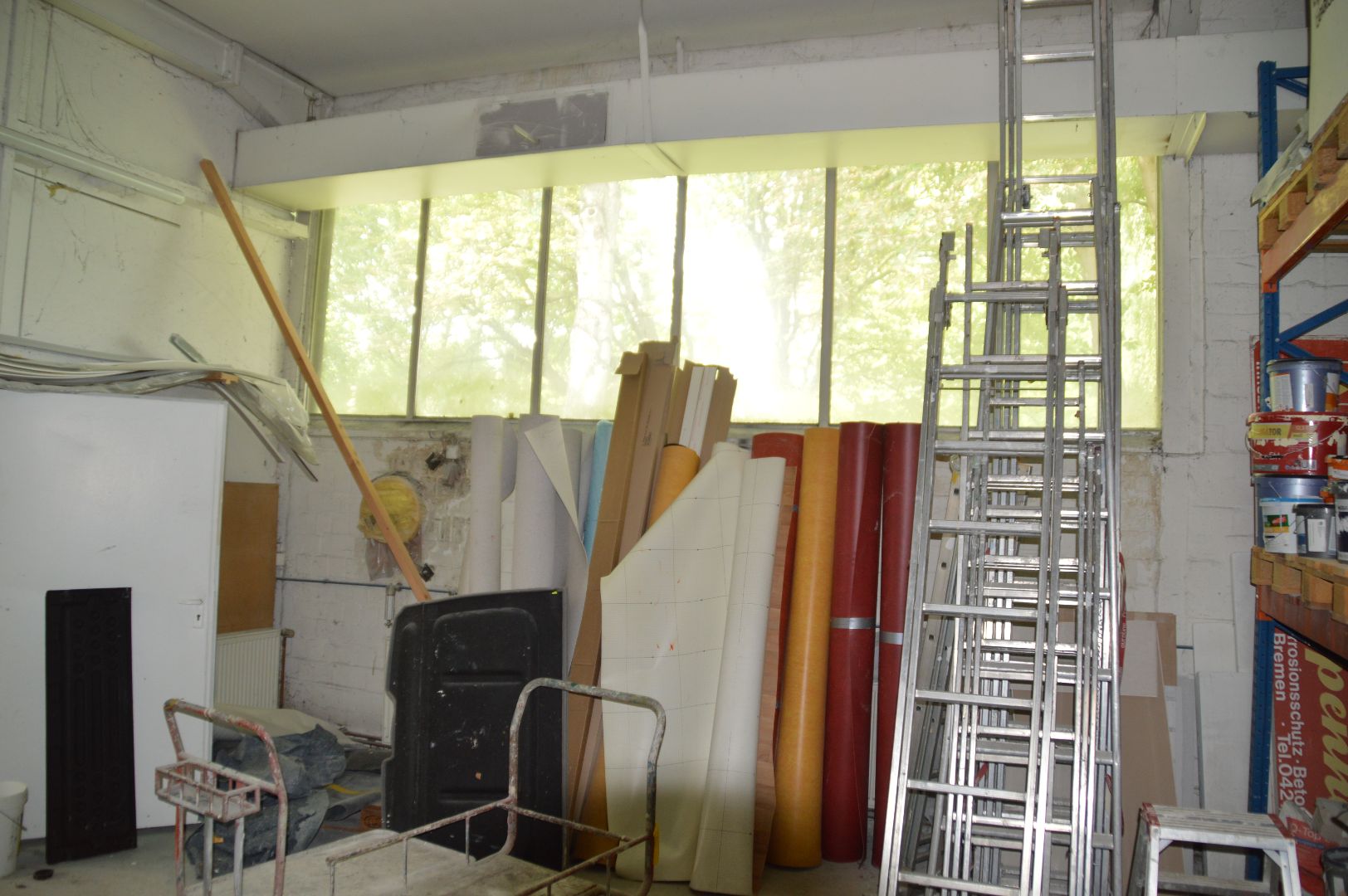 - Erdgeschoss: Büros, Flure, Sanitär- und Nebenräume, Werkstatt-/Lagerbereich