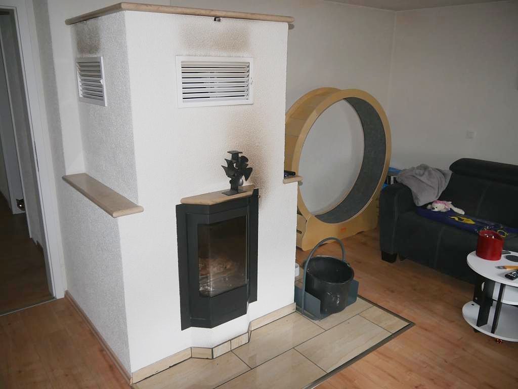 - Fußböden: Fliesen oder Laminat, überwiegend Kunststoffrahmenfenster mit Außenjalousien, Hauseingangstür aus Holz mit Glaseinsatz, Holzinnentreppe, Innenwände überwiegend gefliest oder gestrichen, holzfurnierte Innentüren, Plattenheizkörper, Kamin