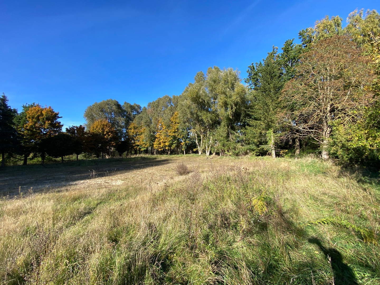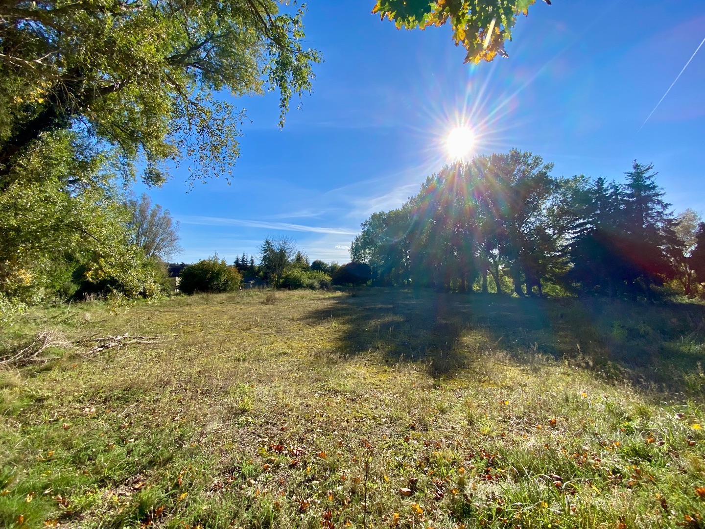 - Das Grundstück umfasst ein ehemaliges Erholungsgelände mit früherem Schwimmbeckenbereich. Die Fläche ist überwiegend als Grünland ausgestaltet und wird auf drei Seiten – Norden, Süden und Westen – von einem kleinen Bachlauf eingefasst. Östlich grenzt das Areal an eine bestehende Wohnsiedlung.