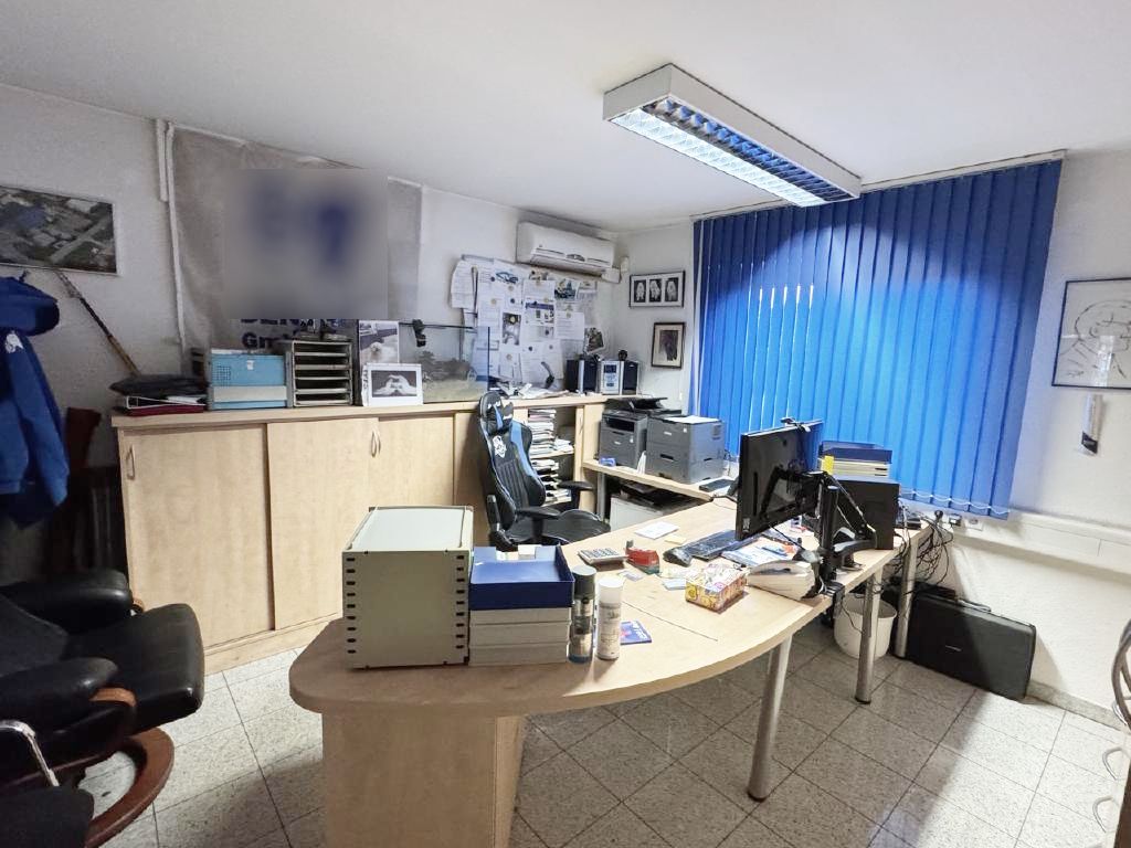 - Bei der zum Verkauf stehenden Liegenschaft handelt es sich um ein 3.696,00 m² großes Gewerbegrundstück, welches mit einer unterkellerten Werkhalle mit Bürofläche im Frontbereich bebaut ist. Über den Büroflächen im Frontbereich wurde eine Lagerfläche eingerichtet. Seitlich an der Halle angebaut befinden sich Sozialbereiche mit Waschraum, Umkleide und Aufenthaltsraum.