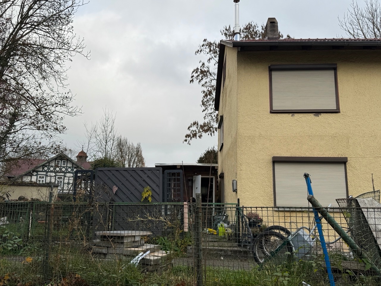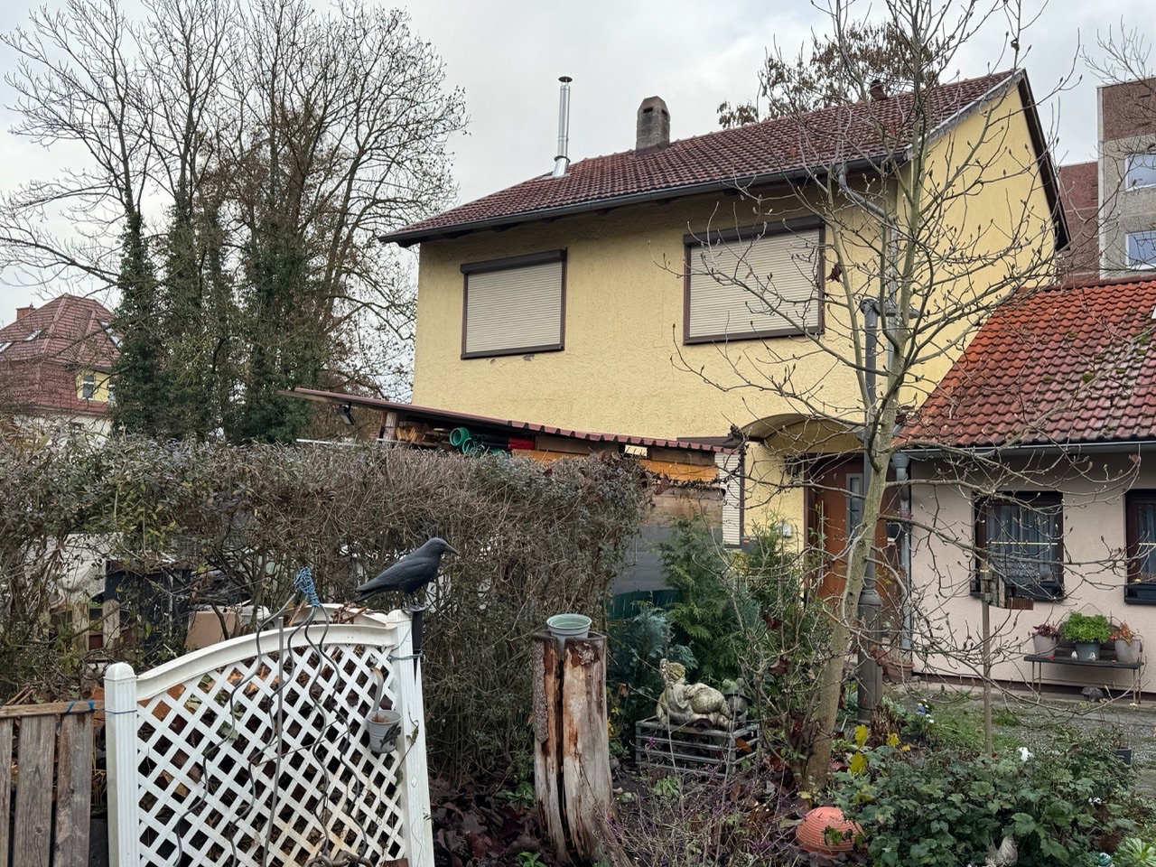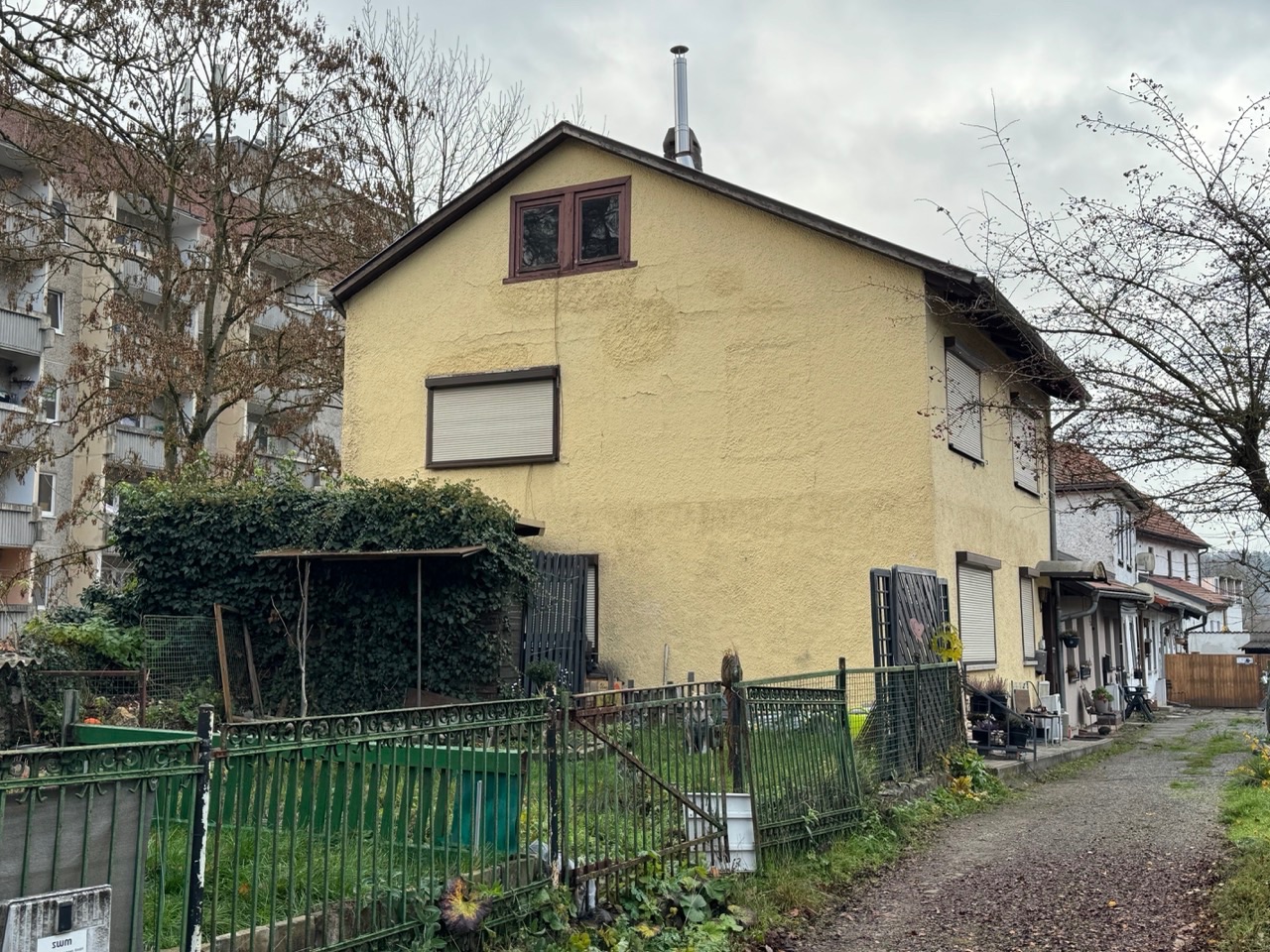 - Bei der zum Verkauf stehenden Immobilie handelt es sich um ein älteres, zweigeschossiges, massives Wohnhaus als Reihenendhaus, errichtet auf einem kleinen, fast vollständig bebauten Grundstück.