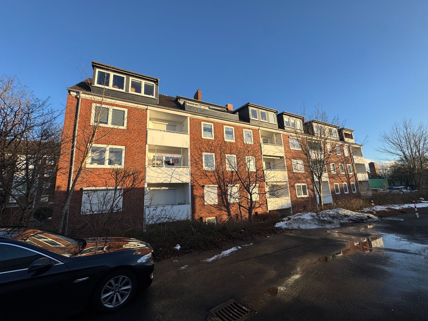 - Die Umgebung ist überwiegend durch innerstädtische Wohn- und Geschäftsbebauung geprägt.