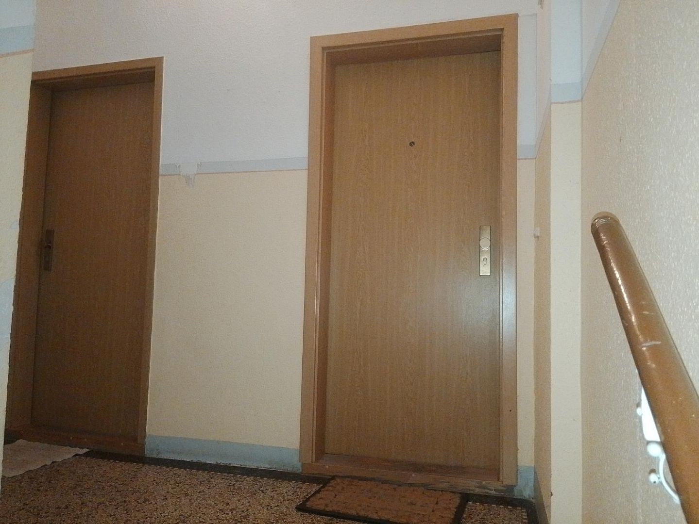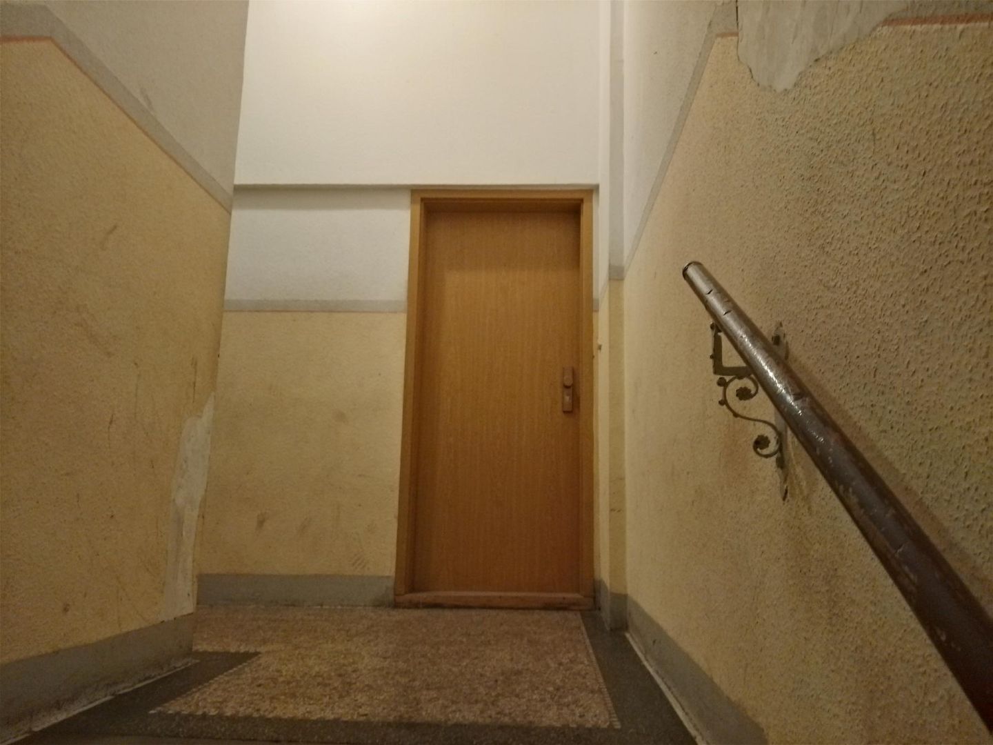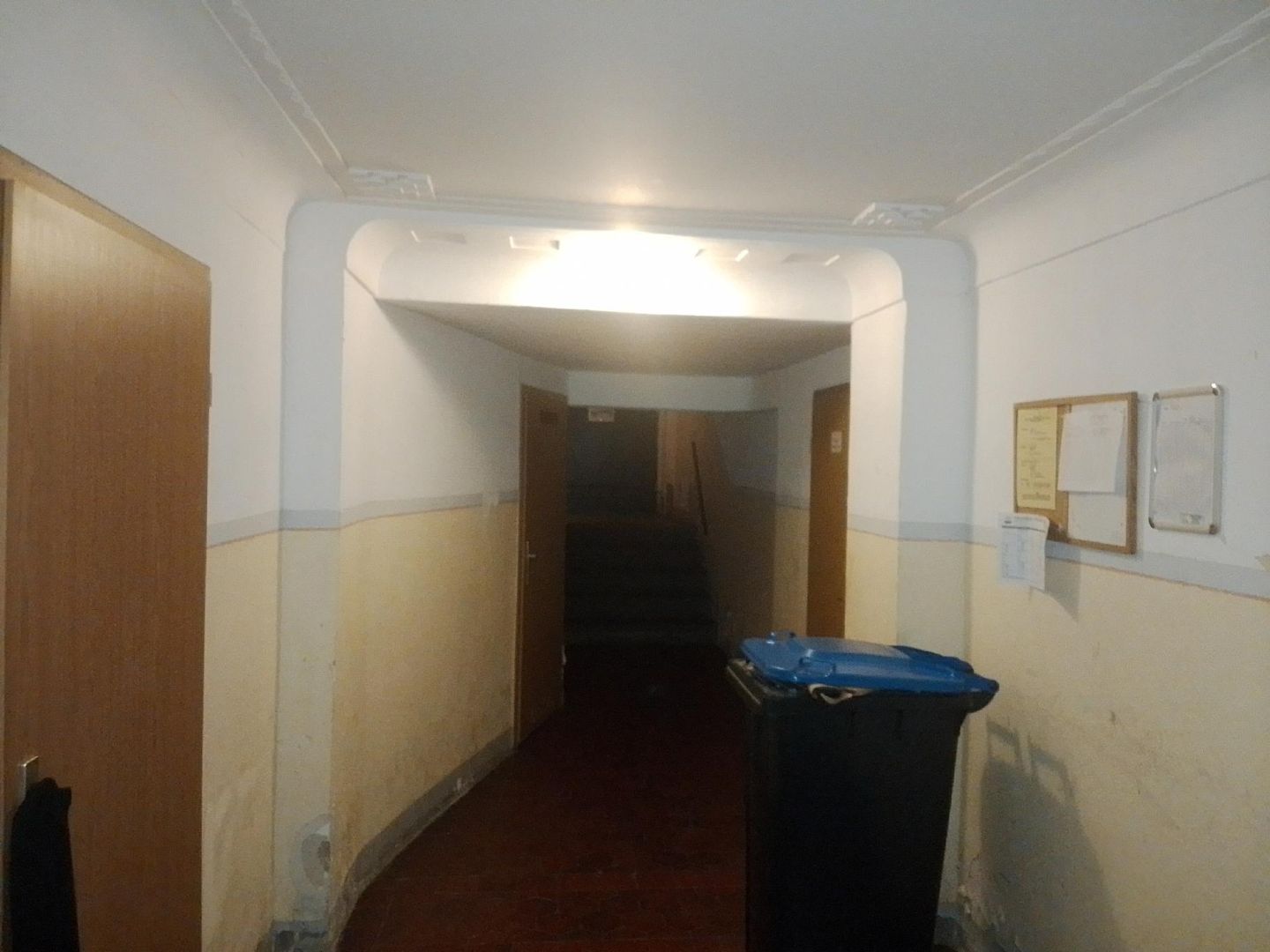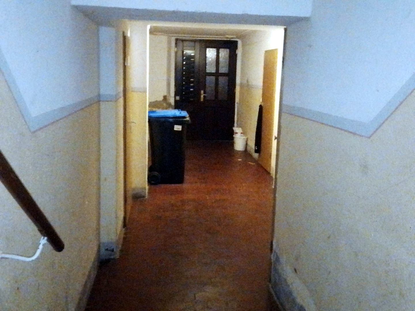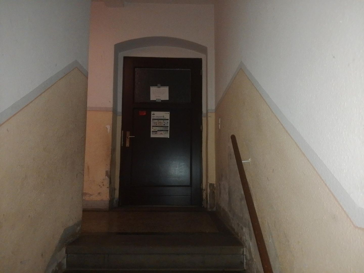 - Bei der Immobilie handelt es sich um eine Eigentumswohnung in einem nach dem Wohnungseigentumsgesetz (WEG) aufgeteilten Mehrfamilienhaus. Das viergeschossige Gebäude wurde in massiver Ziegelbauweise errichtet, ist vollständig unterkellert und verfügt über einen nicht ausgebauten Dachspitz. Das Satteldach ist mit Tonpfannen eingedeckt, der Sockelbereich besteht aus Sandstein. Die Fassade ist verputzt und gestrichen. Die Hauseingangstür aus Aluminium/Kunststoff mit Lichtausschnitten im Sprossenkreuz führt in das Treppenhaus mit geschlossenen Steintreppen (augenscheinlich dunkler Waschbeton) und Holzhandlauf.